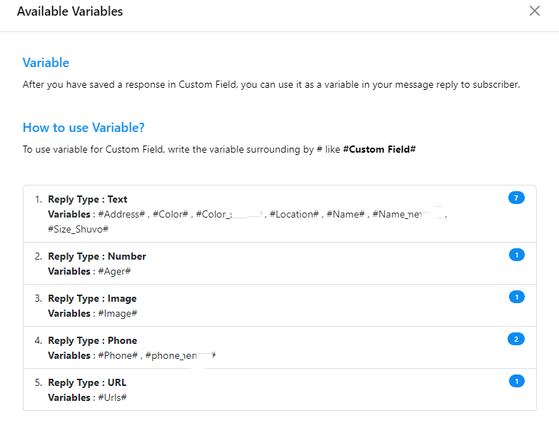 Custom Variables: Within the `Options` menu, you`ll find instructions on how to use custom variables and a list of available custom variables for your convenience.