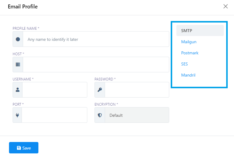 - Save Profile: Once you`ve filled in the details, click the `Save` button to create the new Email Profile.
