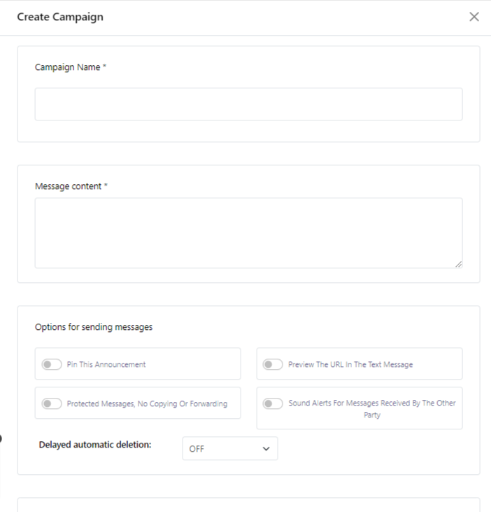 - Options for sending messages: In this part, you will find several switches for configuring message delivery conditions: